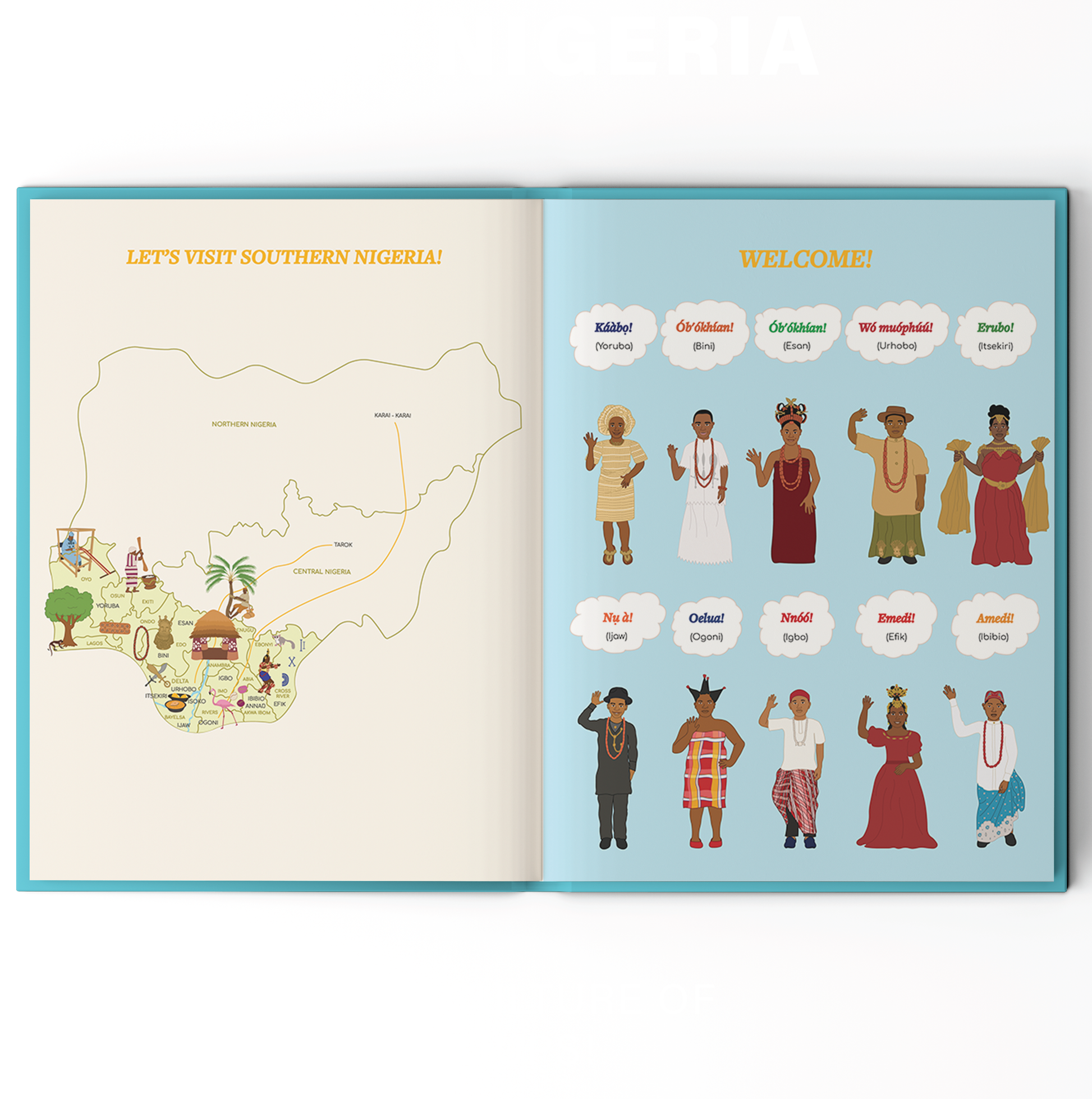 Ethnic groups featured in this book: Yoruba, Bini, Esan, Urhobo, Isoko, Itsekiri, Ijaw, Ogoni, Igbo, Annaŋ, Ibibio, Efik, Ebira, Igala, Idoma, Igede, Tiv, Kuteb, Jukun, Chamba, Berom, Ngas, Tarok, Gbagyi, Bariba, Nupe, Lelna, Ham, Atyap, Hausa, Fulani, Tangale, Karai-Karai, Marghi, Kanuri & Shuwa Arab.